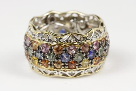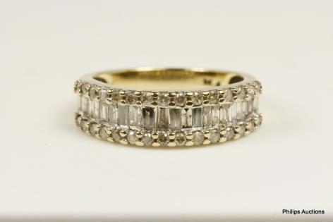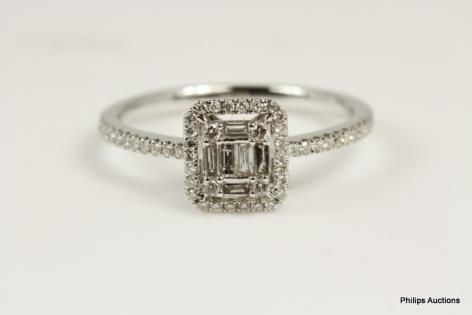 A RECTANGULAR MULTI STONE DIAMOND SET DRESS RING