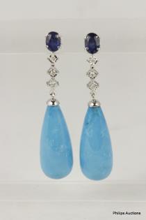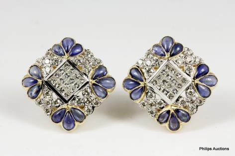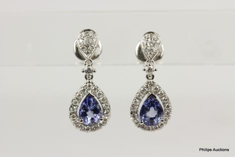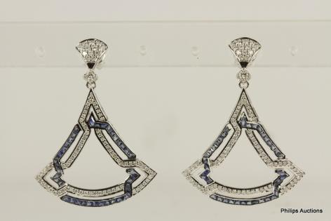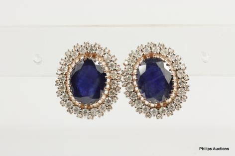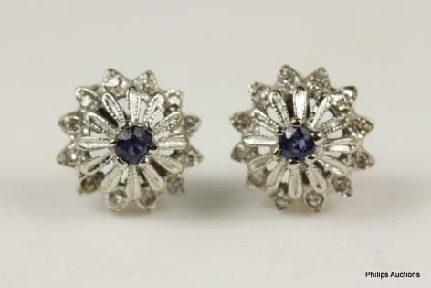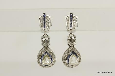 A DELICATE PAIR OF SAPPHIRE AND DIAMOND SET EARRINGS