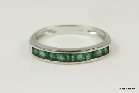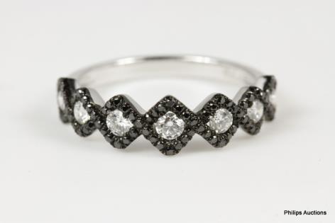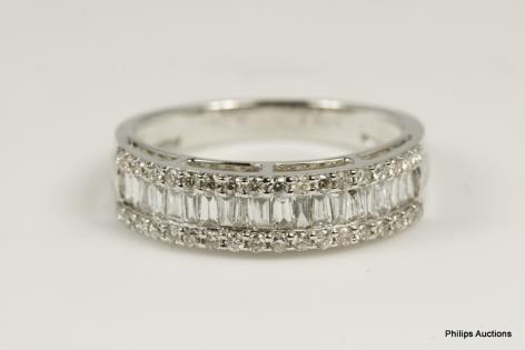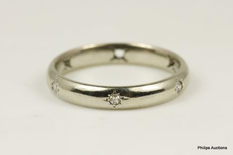A WHITE GOLD HAMMER SET DIAMOND BAND RING