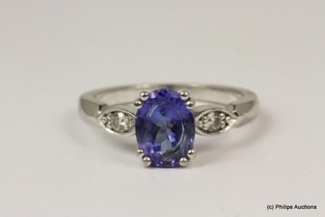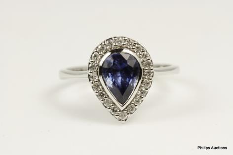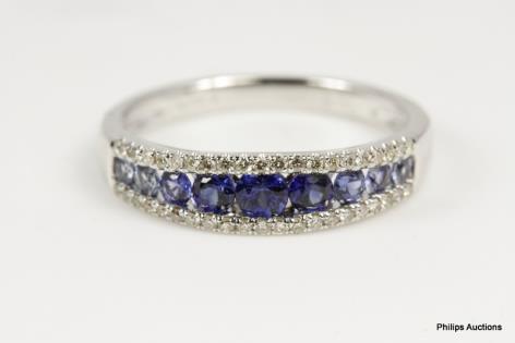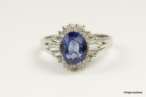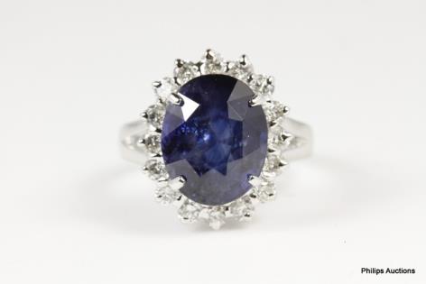 A DEEP BLUE SAPPHIRE AND DIAMOND DETAILED DRESS RING