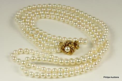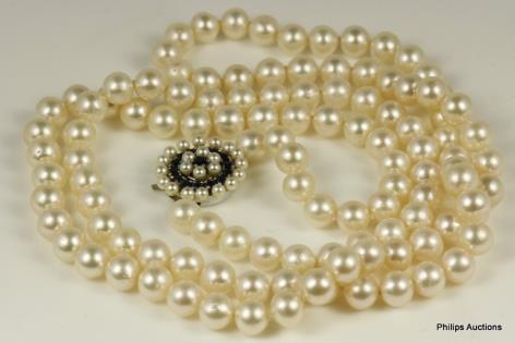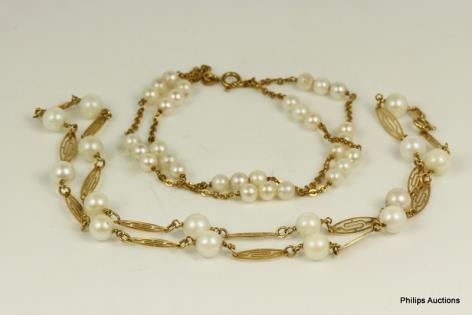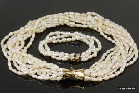 A MULTI STRAND PEARL NECKLACE AND MATCHED BRACELET