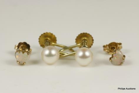 TWO PAIR OF STUD EARRINGS, PEARLS AND OPALS
