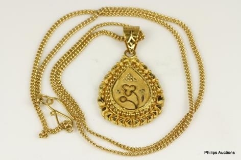 A HIGH CARAT PENDANT ON GOLD CHAIN
