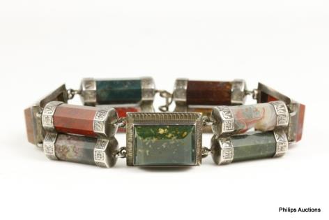 AN ANTIQUE SILVER AND HARDSTONE SCOTTISH BRACELET