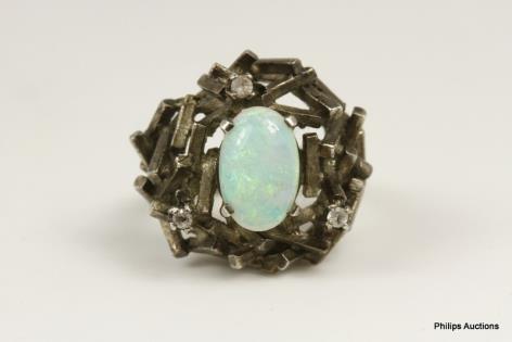 A SOLID OPAL ARTISAN SET SILVER DRESS RING