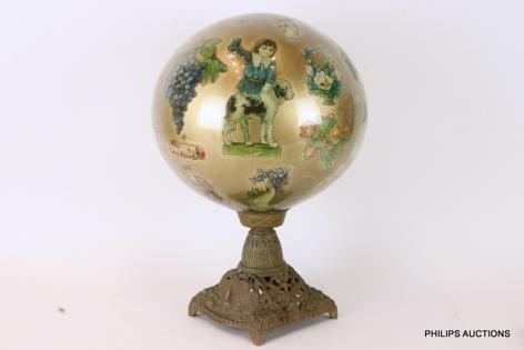 A VICTORIAN DECOUPAGE GLASS BALL