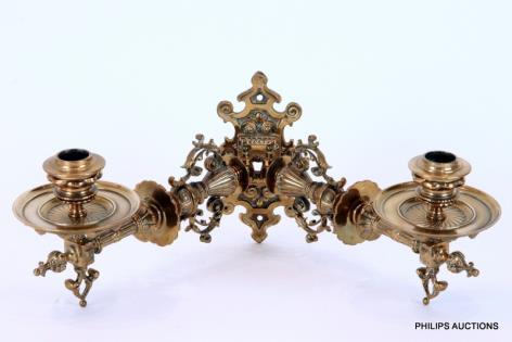 A BRASS DOUBLE BRANCH PIANO SCONCE