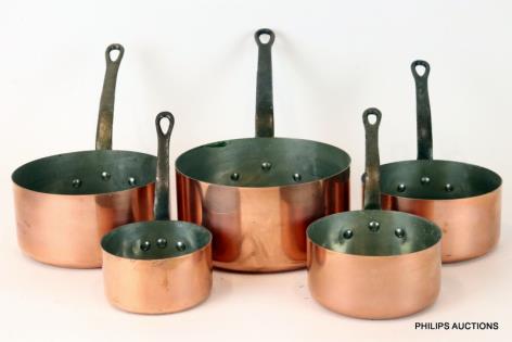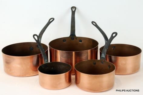 A SET OF FIVE FRENCH COPPER SAUCEPANS