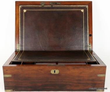 A VICTORIAN CAMPAIGN STYLE WALNUT WRITING SLOPE