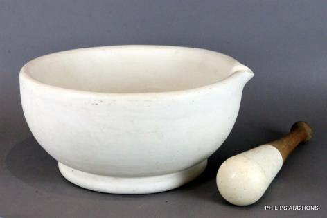A LARGE PORCELAIN MORTAR AND PESTLE