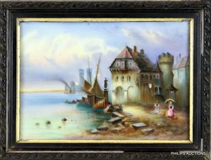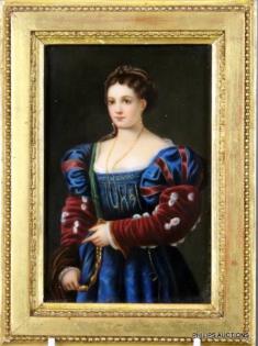 A FRAMED PORCELAIN PORTRAIT PLAQUE OF 'LA BELLA" AFTER TITIAN