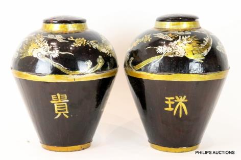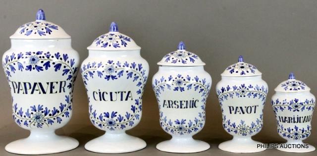 A SET OF FIVE FRENCH APOTHECARY LIDDED JARS