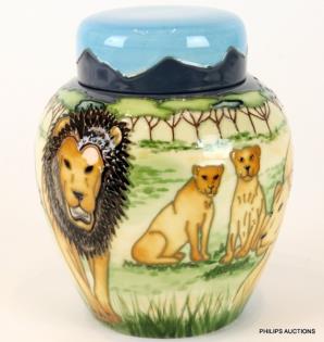 A SET OF FIVE GEMBROOK POTTERY JARS AND COVERS