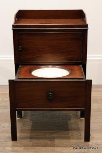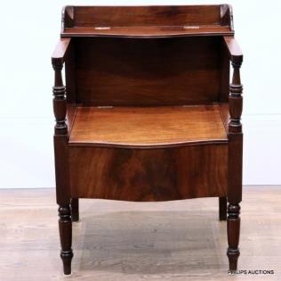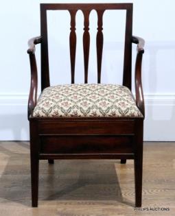 AN ANTIQUE MAHOGANY COMMODE CHAIR