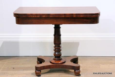 A WILLIAM IV MAHOGANY FOLD OVER GAMES TABLE