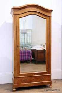 AN ANTIQUE WALNUT MIRRORED WARDROBE