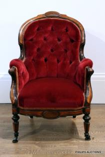 A FINE VICTORIAN ROSEWOOD INLAID GENTLEMAN'S CHAIR
