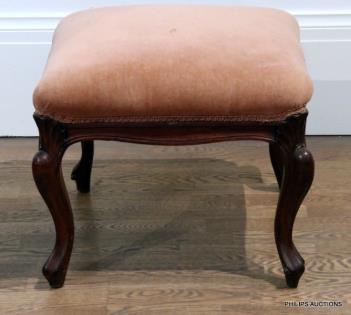 A VICTORIAN UPHOLSTERED MAHOGANY FOOTSTOOL