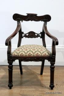 A REGENCY MAHOGANY CARVED CHAIR