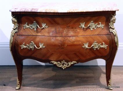 A FINE LOUIS XV STYLE TULIPWOOD BOMBE COMMODE
