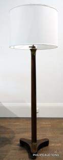 A FRENCH TIMBER AND BRASS EMPIRE STYLE STANDARD LAMP