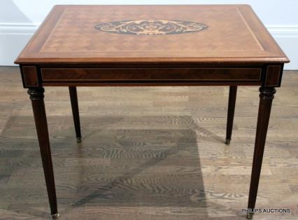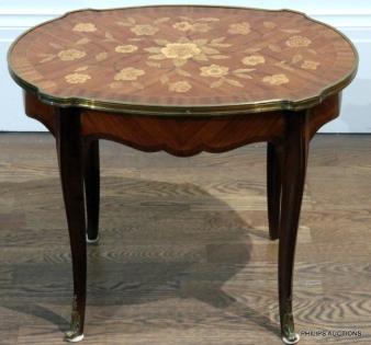 A LOUIS XV STYLE INLAID TULIPWOOD OCCASIONAL TABLE