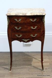 A LOUIS XV-STYLE TULIPWOOD BEDSIDE CABINET