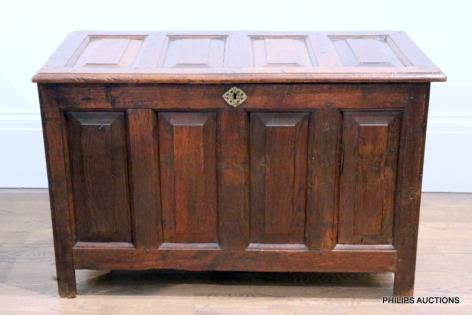 AN ENGLISH EIGHTEENTH CENTURY OAK COFFER