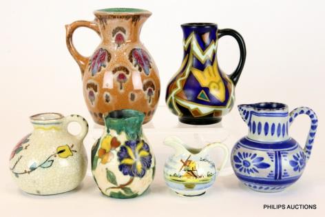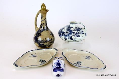 FIVE GOUDA AND DELFT POTTERY ITEMS