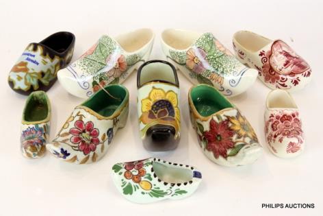 A GROUP OF TEN GOUDA AND DUTCH POTTERY CLOGS