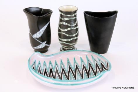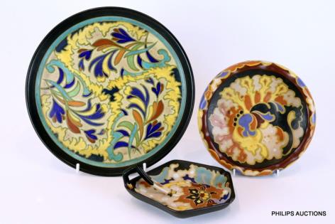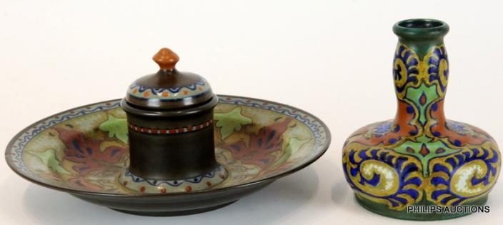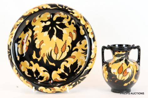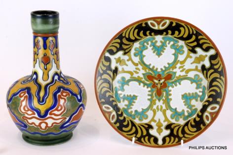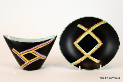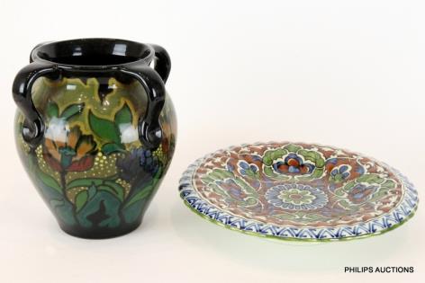 A MODERN DESIGN GOUDA POTTERY 'VIRA' VASE AND DISH