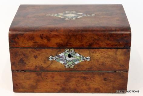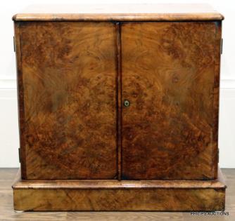A VICTORIAN BURR WALNUT DOUBLE DOOR EIGHT DRAWER JEWELLERY CABINET