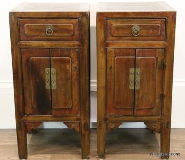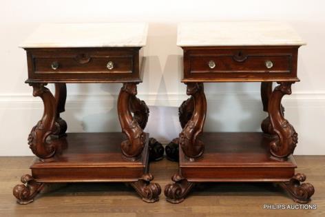 A PAIR OF VICTORIAN MARBLE TOPPED BEDSIDE CABINETS