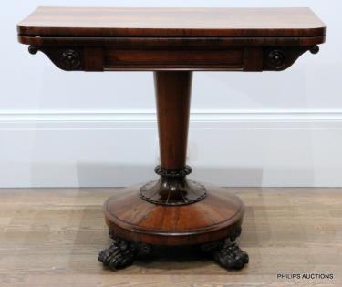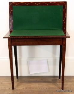 AN EARLY VICTORIAN INLAID MAHOGANY FOLD OVER TABLE