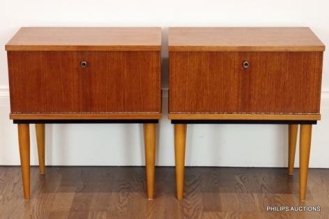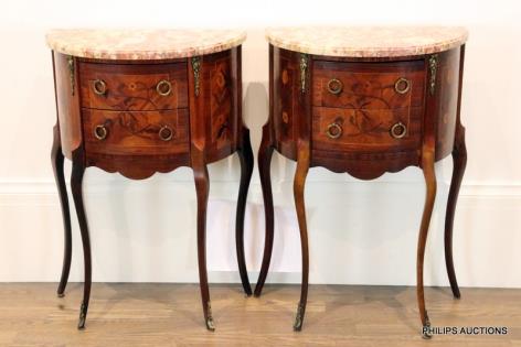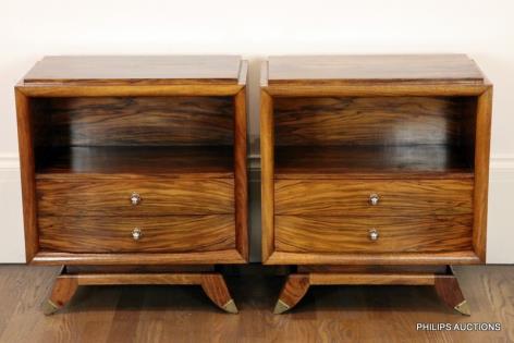 A PAIR OF TRANSITIONAL STYLE TULIPWOOD SMALL COMMODES