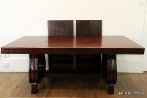 A FRENCH ART DECO ROSEWOOD INLAID EXTENSION DINING TABLE