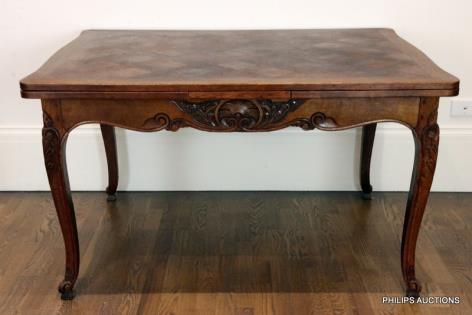 A REGENCE STYLE OAK PARQUETRY EXTENSION TABLE