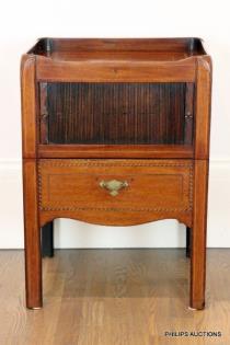 A GEORGE III MAHOGANY INLAID BEDSIDE COMMODE