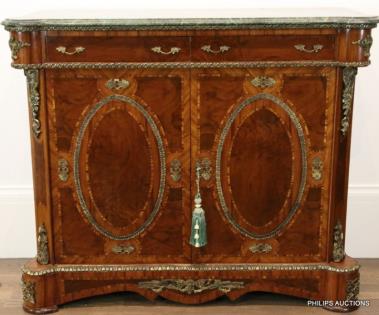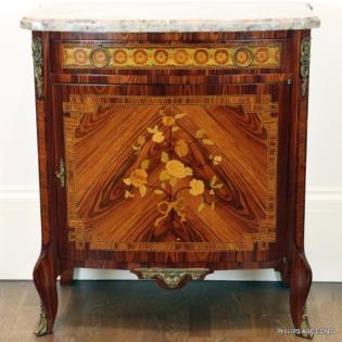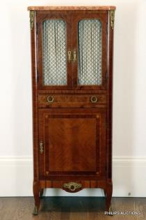 A LOUIS XVI STYLE MARQUETRY CABINET IN MIXED TIMBERS