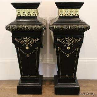 A LARGE PAIR OF NAPOLEON III STYLE EBONISED PEDESTALS