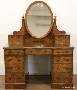 A VICTORIAN BURR WALNUT DUCHESS DRESSING TABLE