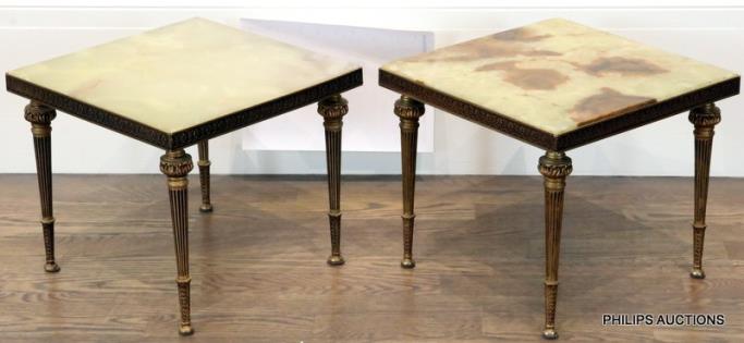 A PAIR OF ONYX AND GILT BRONZE SIDE TABLES