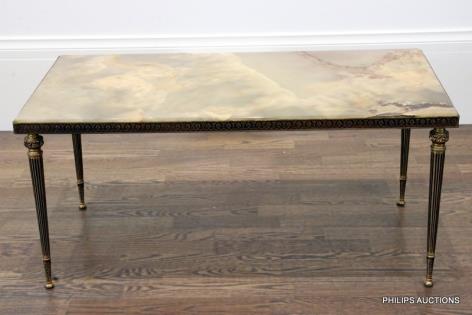 AN ONYX AND GILT BRONZE COFFEE TABLE