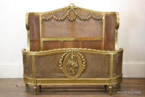 A FINE LOUIS XVI STYLE GILTWOOD QUEEN SIZE CANED BED