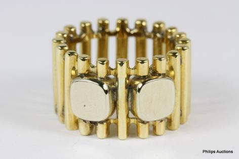 A STRIKING 18CT RETRO GOLD RAILED BAND RING 14 GRAMS