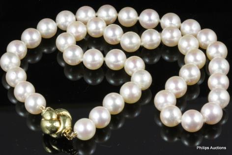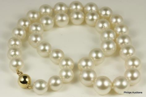 A LOVELY STRAND OF BLUSH WHITE SOUTH SEA PEARLS