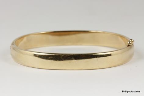 A SOLID 9CT ROSE GOLD OVAL HINGED BANGLE 32.5GRAMS