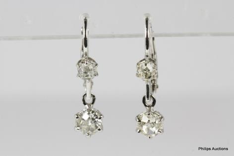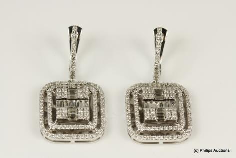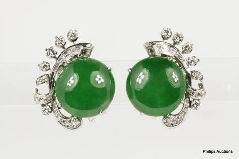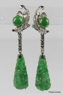 A BEAUTIFUL PAIR OF JADEITE AND DIAMOND DROP PANEL EARRINGS
