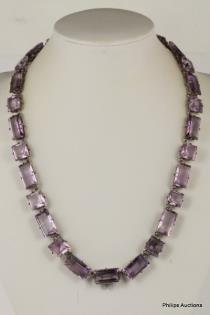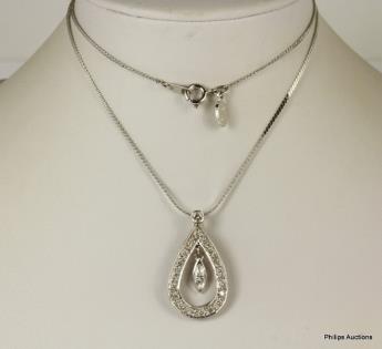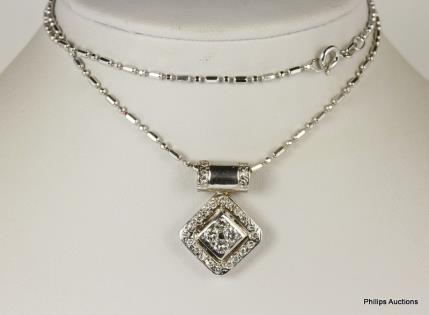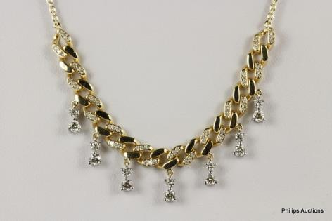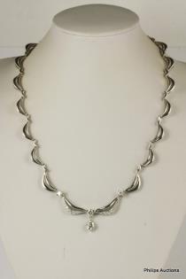 A FANCY DIAMOND SET WHITE GOLD SCALLOPED NECKLACE