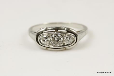 AN UNUSUAL ANTIQUE THREE STONE OLD CUT DIAMOND RING